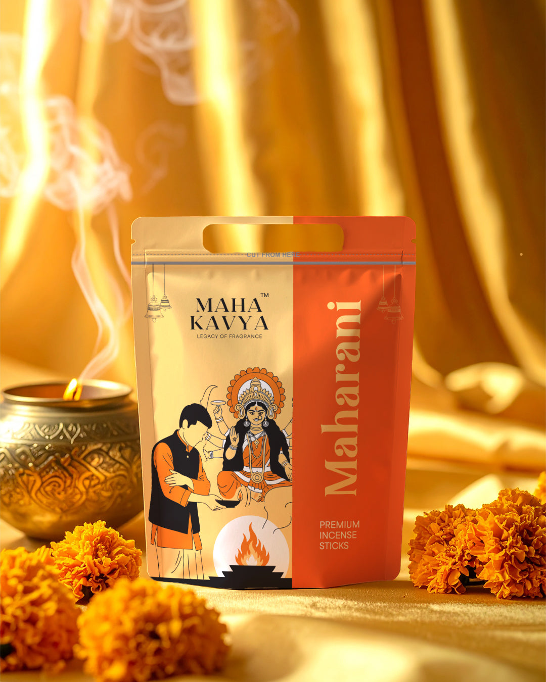 Experience devotion wrapped in royalty with Maharani Premium Incense Sticks by Maha Kavya....